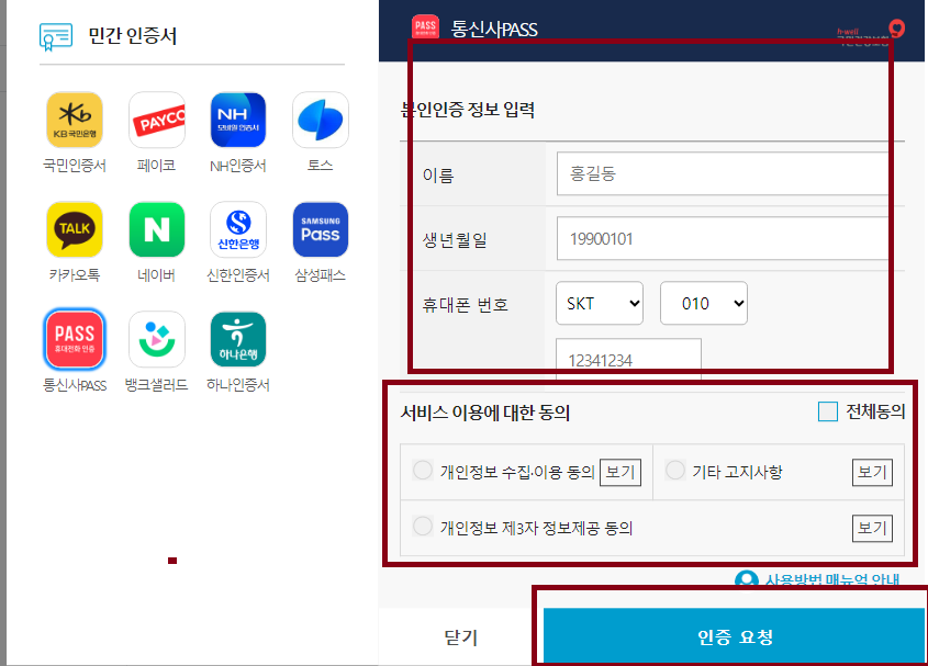 자기 편안하신 대로 인증 앱을 쓰고 자기 인적 사항을 넣고 인증 요청하면 아래 페이지로 넘어갑니다.