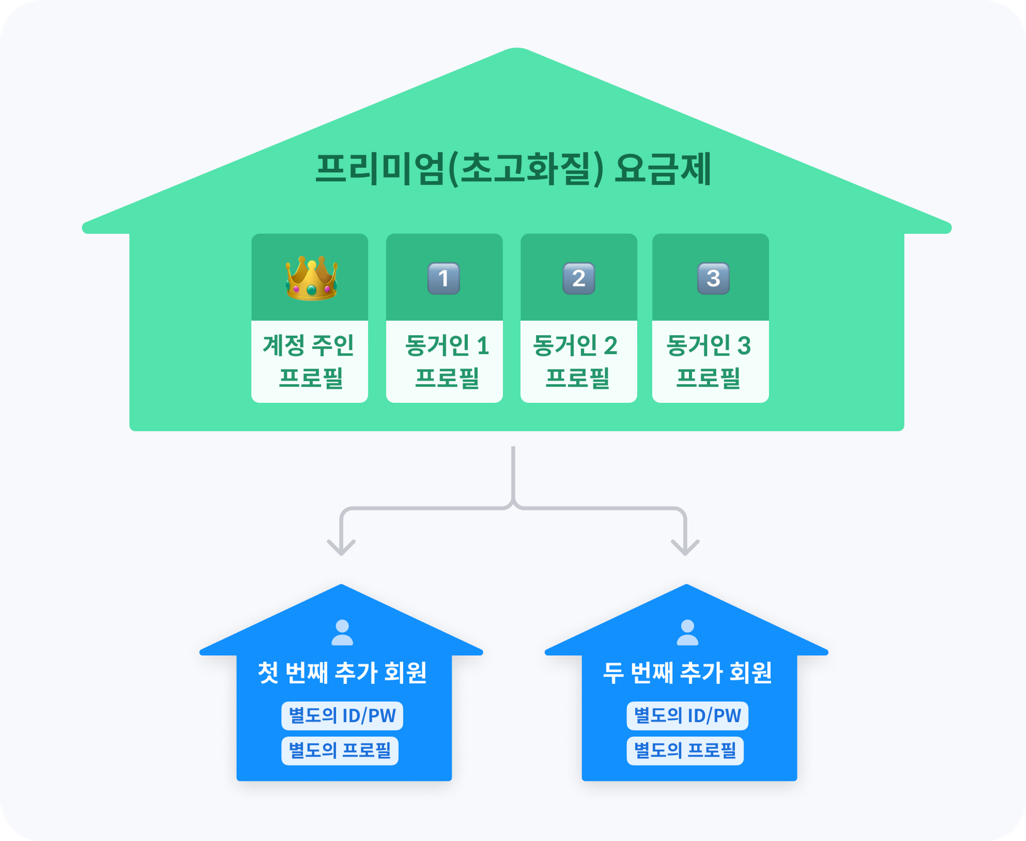 함께 사는 가족·룸메이트와 프리미엄 요금제를 사용하고 계신다면 피클플러스에 파티장으로 등록해 기존 프로필을 그대로 사용하면서 매달 7,510원씩 절약할 수 있어요.