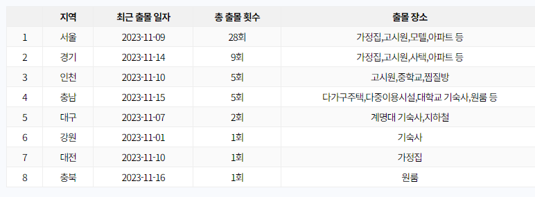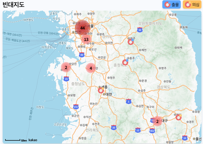 아래 페이지를 보시다 시피 빈대들둘울 하눈에 보실 수 있고 주로 수도권인 서울이나 세종 천안등은 이런 곳에서 많이 발생 하고 있습니다. 문제는 계속 남하하 하고 있고 밑으로 퍼지는 중인데요. 앞으로 빈대 상황을 아래 홈페이지를 통해 참조하시면 좋겠습니다. 노란색 부분은 시민들이 제보로 빈대가 나타난 부분인데요. 빈대에 대해서 철저한 대비가 필요합니다.