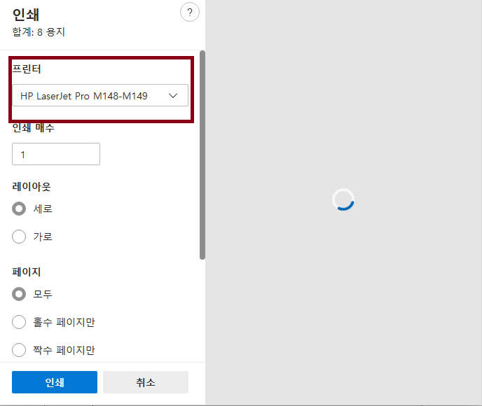 인쇄 버튼을 클릭하면 아래 페이지로 이동합니다.